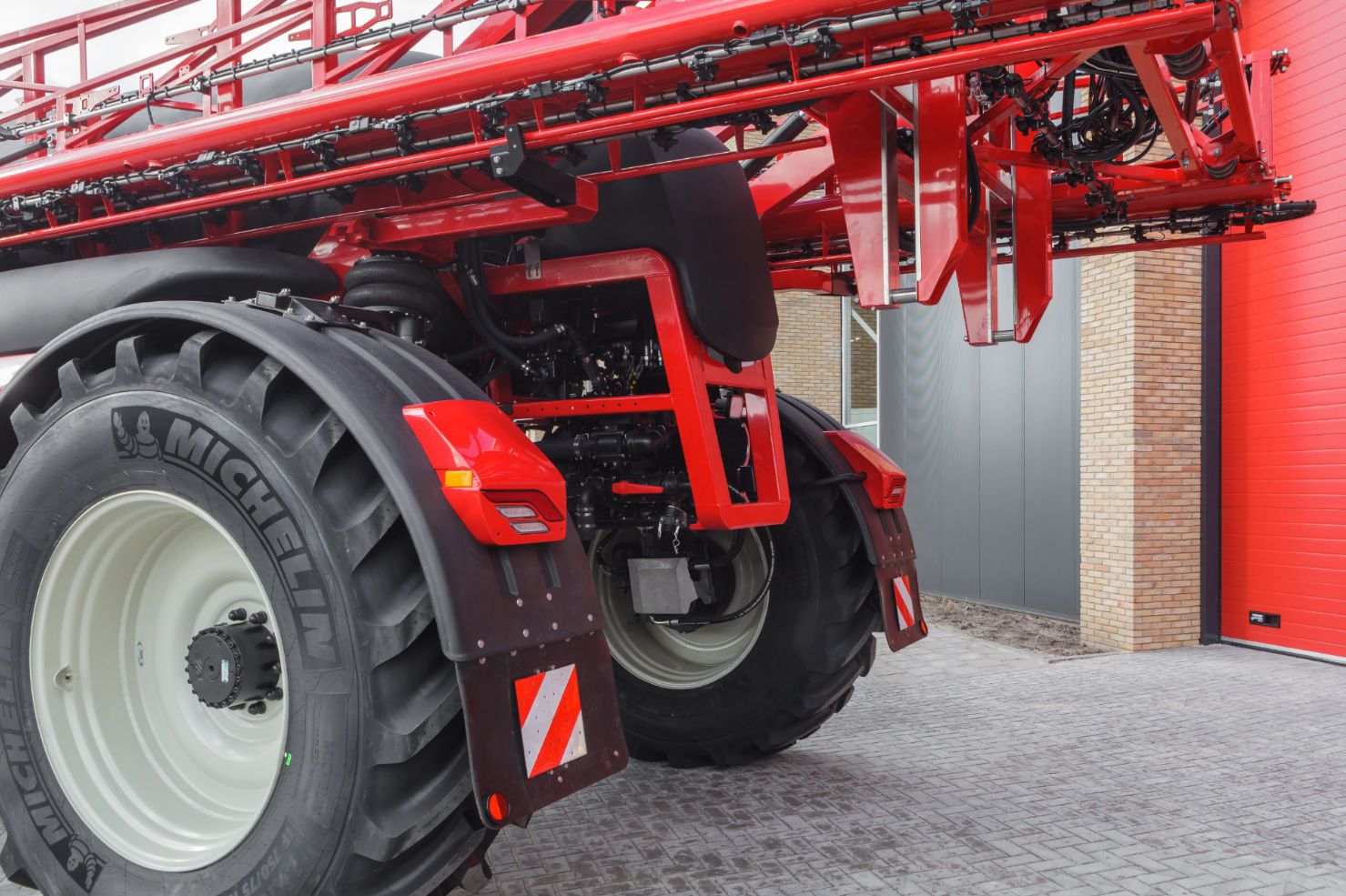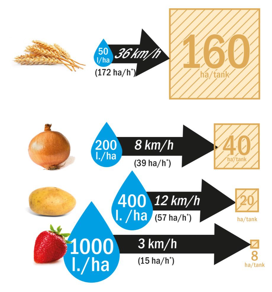 Malgré les pneus hauts et larges, il conserve le rayon de braquage du Condor, le petit frère du Condor Endurance. Ce rayon de braquage faible et cette garde au sol élevée offrent l'avantage de minimiser l'impact sur les récoltes au niveau des voies de pulvérisation et donc de maximiser les rendements. Avec des pneus d'un diamètre atteignant 230 cm, vous avez l'assurance d'une empreinte de pneu agrandie et donc d'une pression inférieure au cm2.