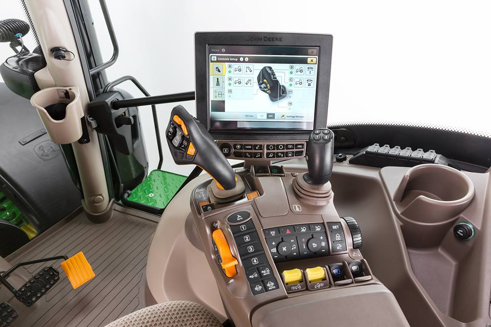 Il s'agit de 2 nouveaux tracteurs le 6230r et le 6250r avec respectivement 230ch et 250ch, soit 280 et 300 chevaux avec surpuissance. Cette puissance fourni par un bloc PSS de 6,8 litres animera un tracteur de 9,5 tonnes, ce qui garantira l'un des meilleurs rapport poids/puissance du marché. Ce tracteur équipé en option d'un joystick CommandPro, un grande première pour John Deere. On peut déjà dire que ce tracteur sera parfaitement adapté aux chantiers de transport, ou sa faible consommation devrait faire des miracles. Autre nouveauté la cabine 5 montantsur fait sont retour...