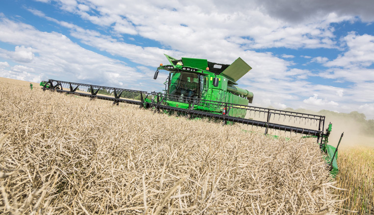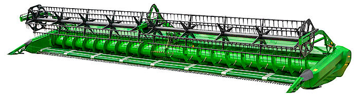 La nouvelle barre de coupe 650PF Premium Flow est développée pour s’adapter à toutes les conditions de récolte. La vis d’alimentation de 76 cm achemine les récoltes comme le colza jusqu'à la moissonneuse-batteuse. La vitesse des tapis s’adapte hydrauliquement pour un acheminement durable de récoltes droites ou versées sur la largeur de coupe entière (12,2m). Le lamier de la coupe se déforme jusqu’à 100 mm afin de protéger la barre de coupe lors de travail sur terrain irrégulier. L’unité de récolte 600X est désormais équipé d’un vis d’alimentation et d’un rabatteur en deux parties ainsi que d’un système à double lamier synchronisés.