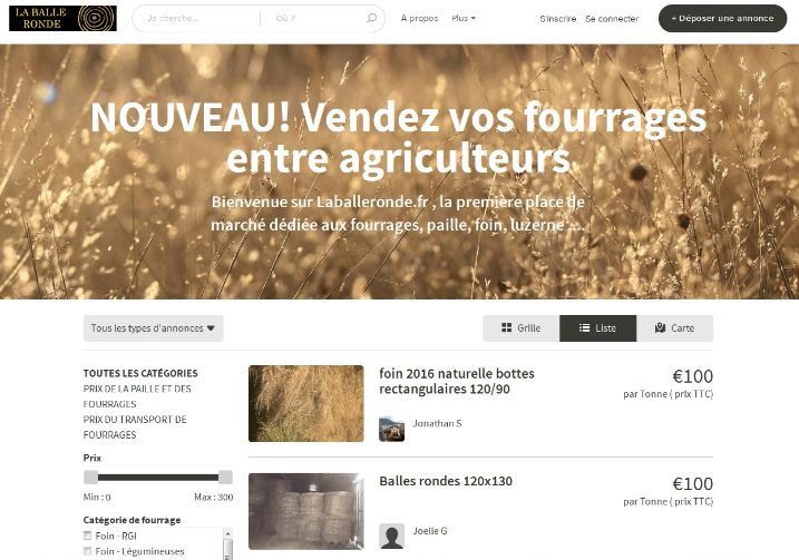 Laballeronde.fr une nouvelle place de marché en ligne dédiée au commerce de fourrages et de paille.