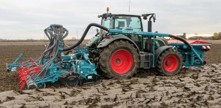 - Avec semoir monograine et tête de répartition Sulky 6, 8 ou 12 rangs pour l’engrais