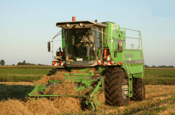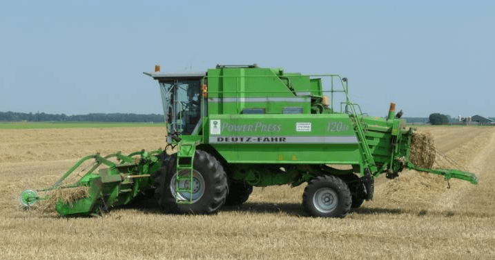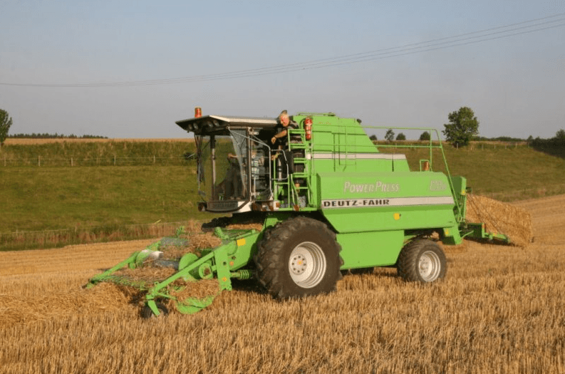Monter sur le châssis d'une moissonneuse batteuse Deutz Fahr une presse et le tour est joué. Vous avez une presse automotrice !!
