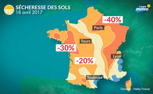 Au bilan, on peut même constater que la situation de sécheresse est encore plus tendue en ce printemps 2017 qu'en 1976, où les précipitations jusqu'en mars étaient parfois un peu moins déficitaires. C'est à partir d'avril 1976 que les pluies ont cessé sur les deux tiers nord-ouest de la France.