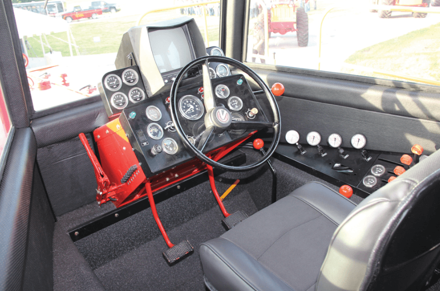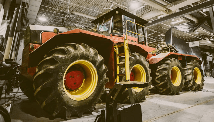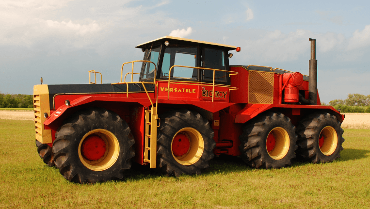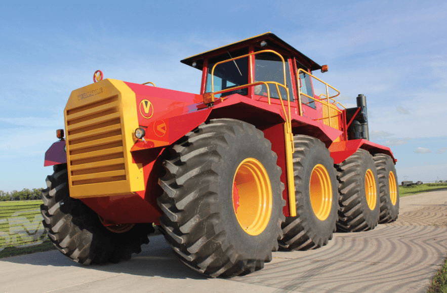 Construit à Winnipeg, au Manitoba, au Canada, ce tracteur massif est de 9 mètres de long, 6.8 mètres de large, 3.35 mètres de haut et alimenté par un moteur V-12 Cummins de 19L et de 600 chevaux de puissance.