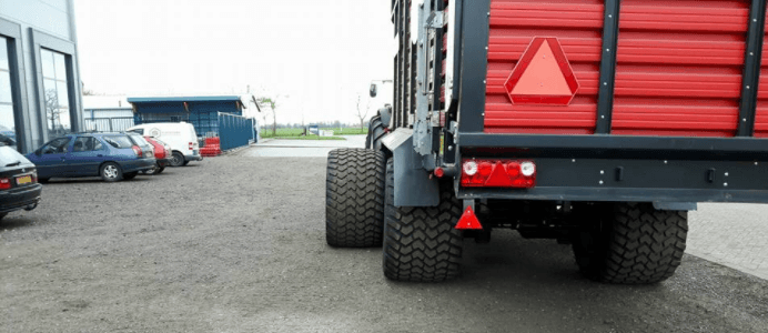On connait les essieux hydrauliques sous les automoteurs d’épandage, mais beaucoup moins sur des remorques autochargeuses. Un concessionnaire Hollandais a adapté le principe des essieux à voie variable sur la remorque de l’un de ses clients.