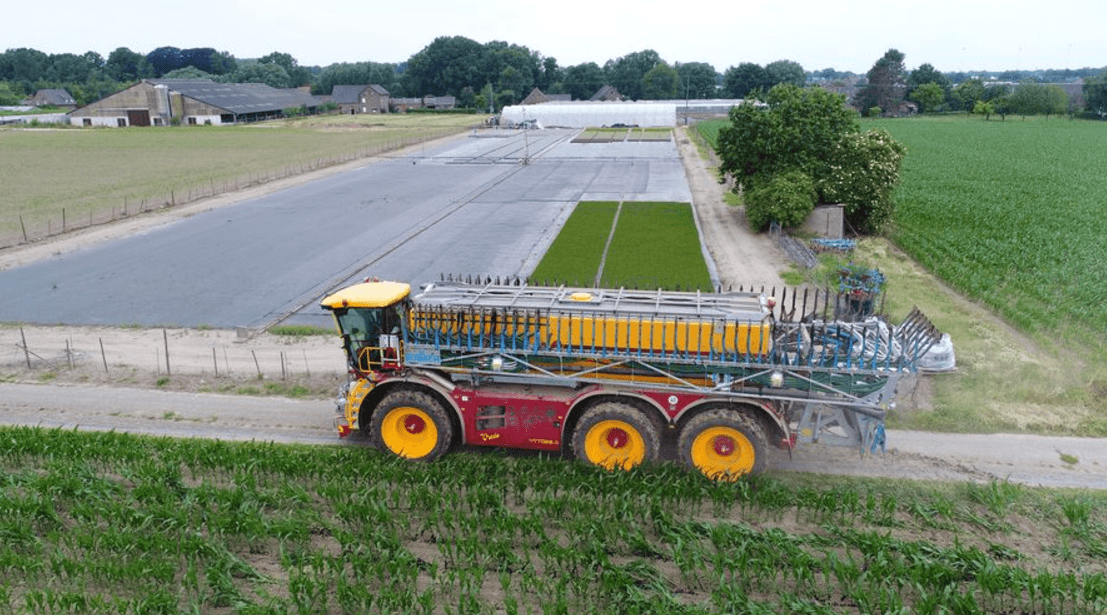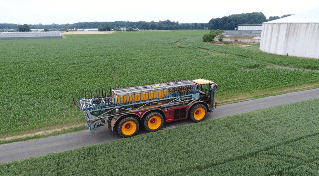 Pour l'application de lisier sur les cultures de maïs, le Vredo offre une très bonne solution. Le VT7028-3 équipé d’un réservoir de 32m3 et de quatre roues par essieu permet d’augmenter le débit de chantier tout en évitant d’éviter d’abimer le maïs.
