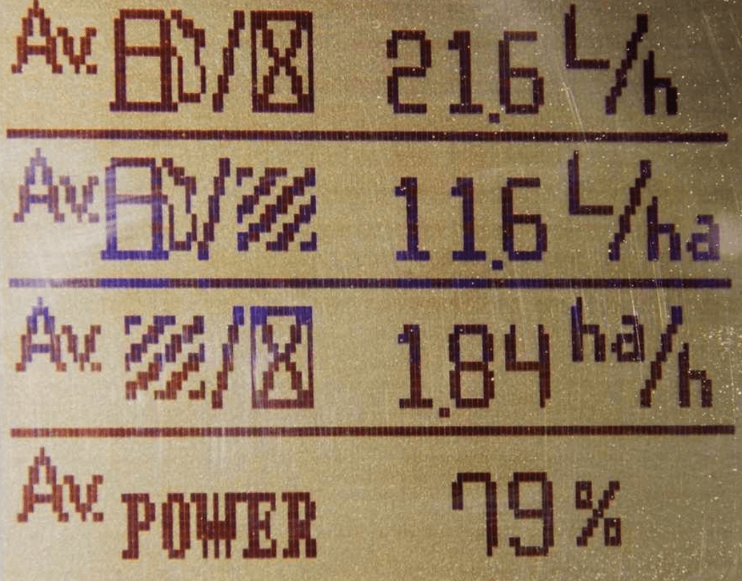 Durant les 24 h le tracteur a labouré 42.37 ha, il a donc parcouru 217.5 km. La consommation totale de carburant a été de 498.14 Litres, soit une consommation moyenne de 11.76 l/ha. Le tracteur à également labouré 1.77 ha/h.