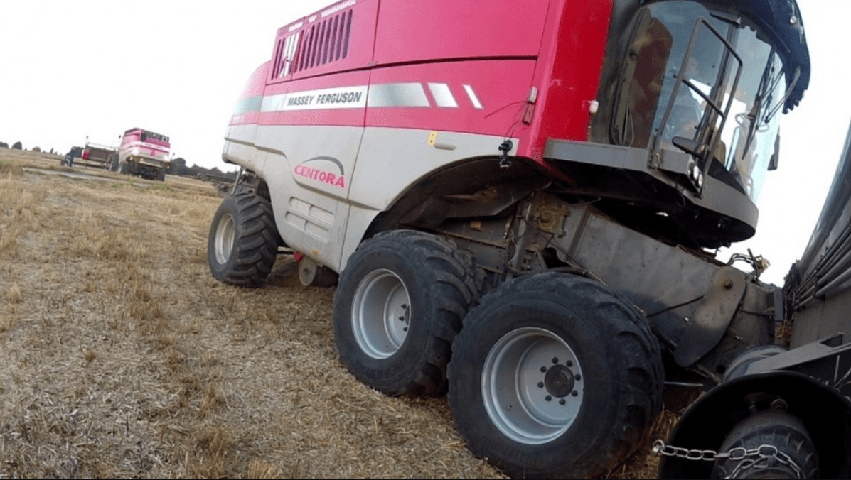 Pourtant depuis maintenant 2011 AGCO travaille en coopération avec l’Université de Dresde, sur un projet de moissonneuse à 6 roues et 3 essieux. Après une série de tests avec différents types et tailles de pneumatiques, plusieurs prototypes ont été créés… à chenilles, des pneumatiques basses pressions, des systèmes de jumelages, etc… Et fait surprenant c’est l’essieu avant tandem monté sur une Massey Ferguson ventora 7280 AL qui obtient les meilleurs résultats, tant au niveau économique qu’agronomique !