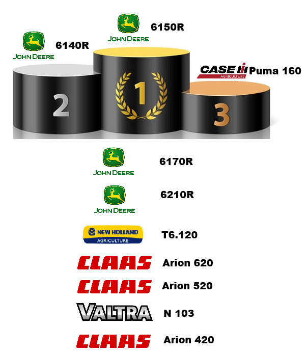 John Deere a donc 4 tracteurs dans ce top 10 (1er, 2nd, 4ème et 5ème). Mais où est Fendt ?
