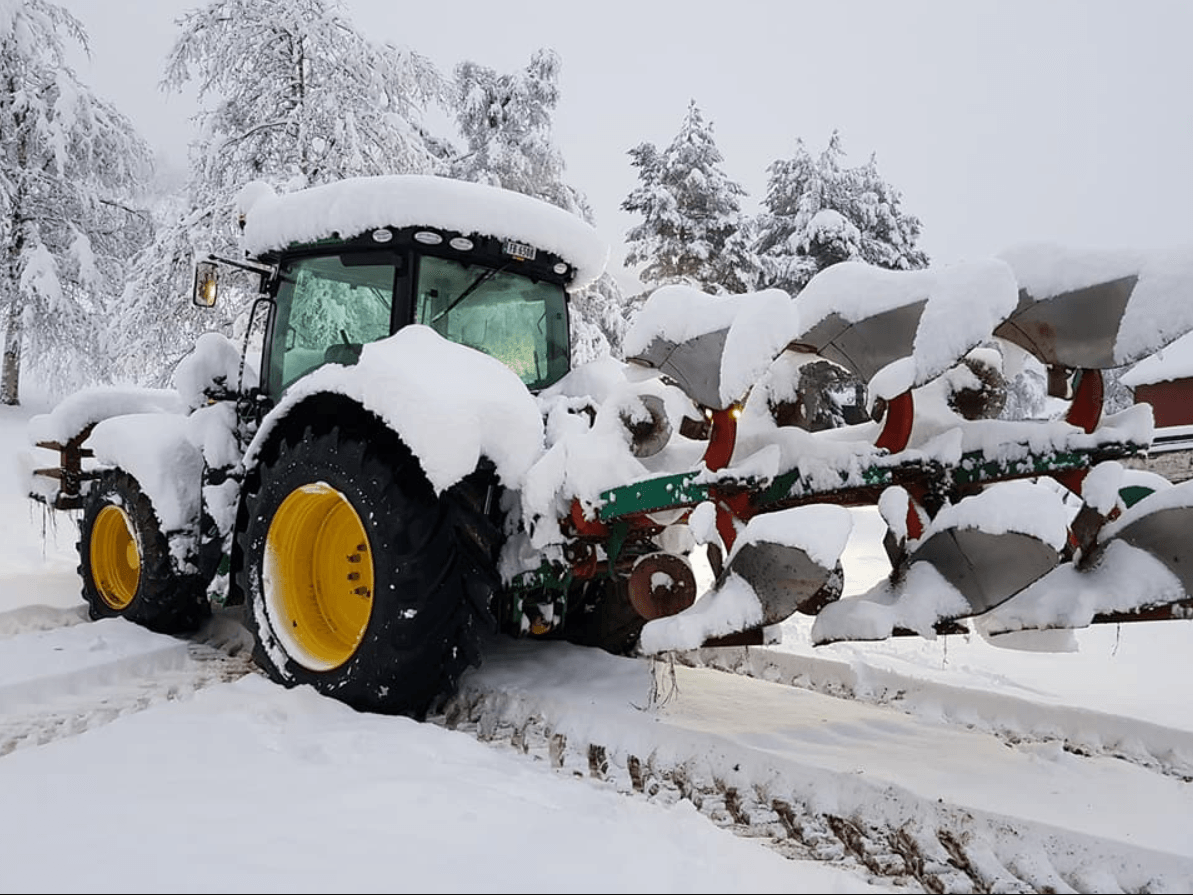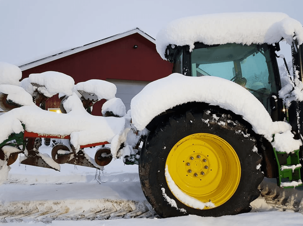 Cet agriculteur avait tout préparé il était prêt pour partir labourer, cependant les 28 centimètres de neige tombées durant la nuit lui on fait changer d'avis...