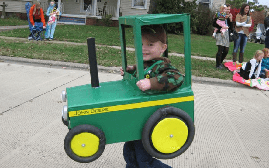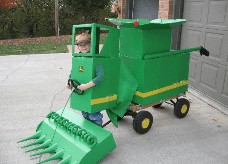 Il existe pleins de déguisements pour halloween et c’est toujours assez drôle de trouver des images d’enfants américains qui pour halloween se déguisent en tracteur John Deere ou Case IH pour faire peur le jour d’halloween…