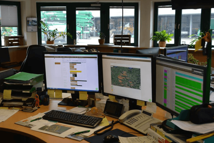 Le siège Osters & Voß c'est des bureaux qui ressemblent a un vrai cockpit d’avion qui permet de contrôler les missions des 200 chauffeurs de l’entreprise.