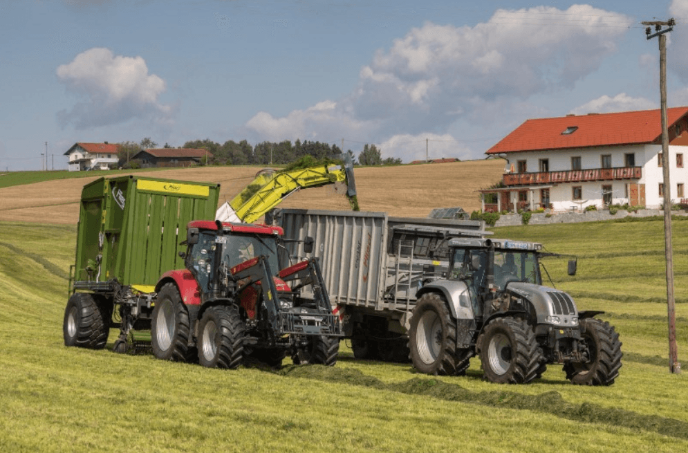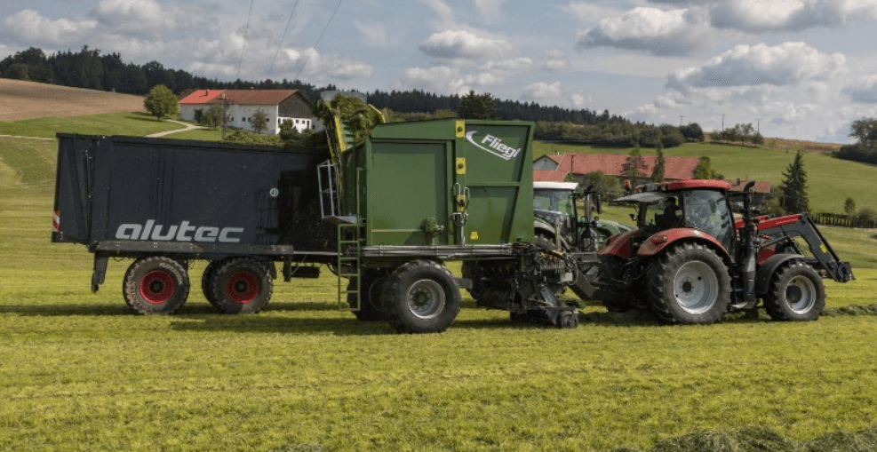 La Fliegl Büffel est un hybride entre une benne autochargeuse et une ensileuse automotrice d’herbe.