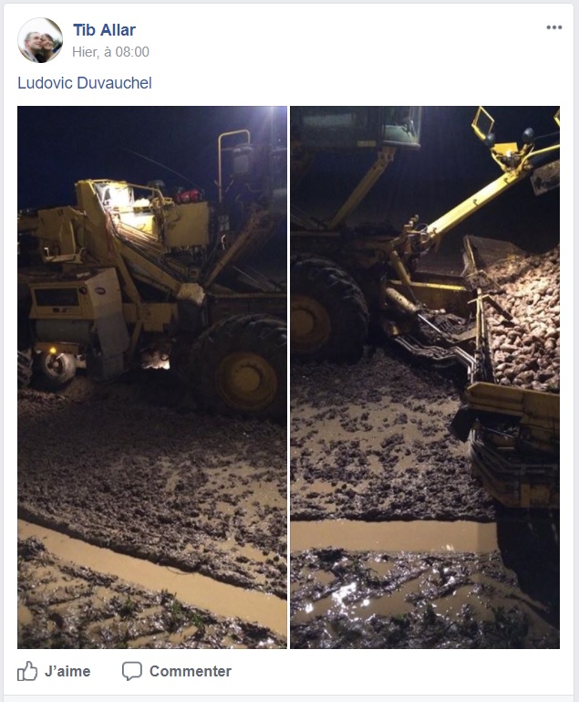 Depuis les précipitations des dernières semaines les chantiers de collecte des dernières betteraves se compliquent. De nombreux chantiers risquent s’éternisé avec l’arrivée des pluie hivernales, on parle d’une fin de campagne pour fin février alors que les années précédentes la campagne betteravière se terminait à la fin du mois de décembre.