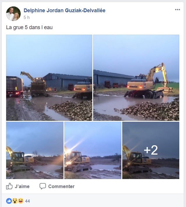 Un agriculteur allemand a diffusé les photos sur Facebook il y a quelques jours, un déterreur Ropa Maus 4 tellement enlisé qu'il a fallu une grue pour sortir la machine. Mais avec les dernières précipitations les chantiers de betteraves en France aussi s’enlise…