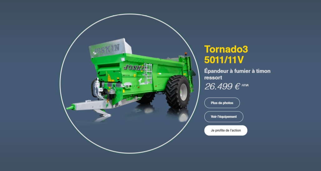 Pour ses 50 ans Joskin, l’entreprise Belge lance des séries spéciales 50 ans. Une sélection de 11 machines représentant l’ensemble de la gamme Joskin proposée à des prix écrasés.