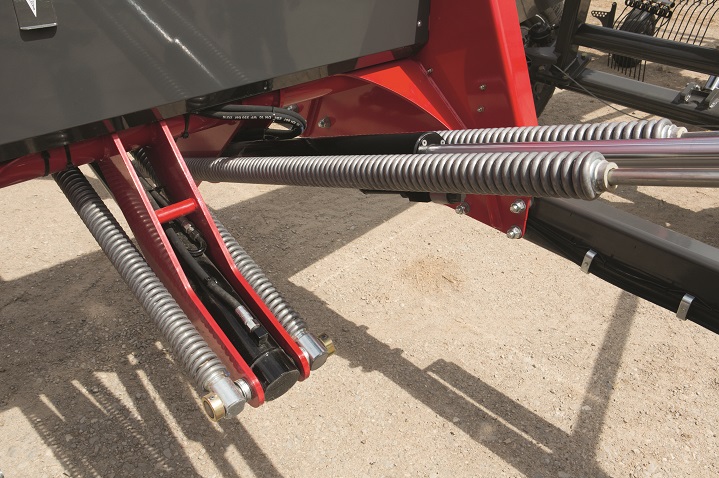 La compensation à ressorts optimisée du bras de relevage et les pneus largement dimensionnés (550/45-22,5) assurent une conduite ménageant le sol même à grande vitesse.