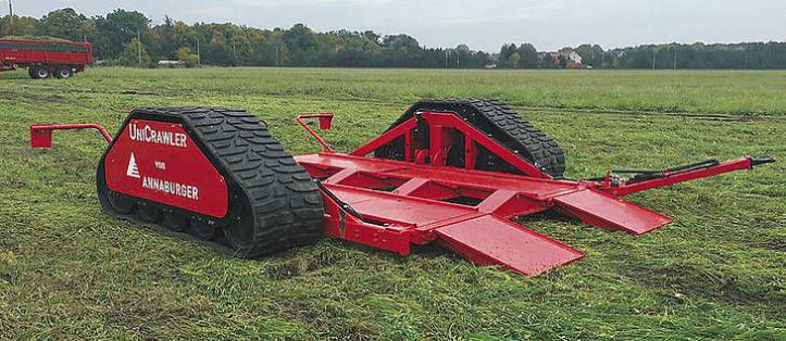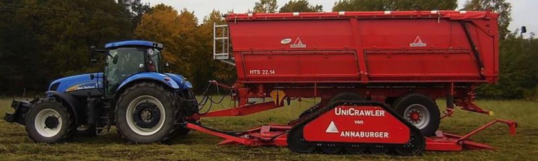 L’Unicrawler d’Annaburger permet grâce à ses chenilles de déplacer les remorques mêmes dans les terrains détrempés. L’objectif d’Annaburger est de permettre aux agriculteurs de tirer le meilleur avantages des pneus, qui restent très efficace lors des déplacements sur la route et de tirer également avantage des chenilles qui sont un atout lorsque les champs sont trop humides et pas assez porteur pour des pneumatiques classiques.