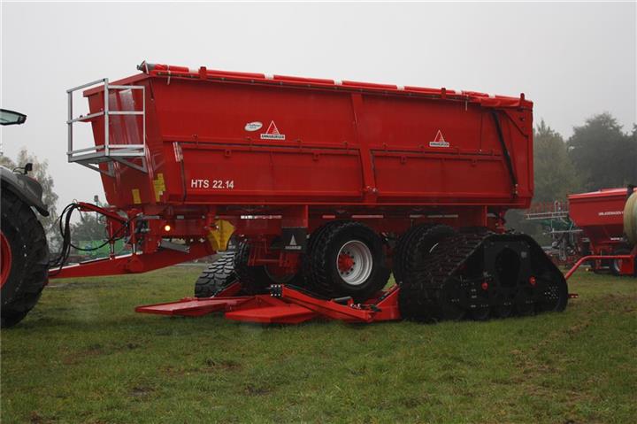 Lorsque les conditions de chantier sont difficiles les bennes équipées de pneumatiques ne peuvent pas toujours passer, c’est pour ça que le constructeur Annaburger a présenté lors de l’Agritechnica 2015, un plateau porteur équipé de chenilles qui permet de porter des remorques à roues même dans les conditions les plus difficiles.