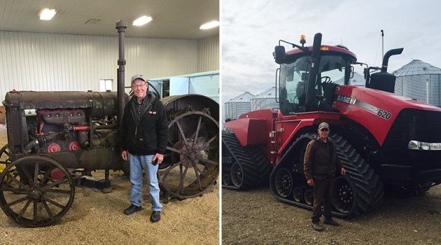 Et il n’y a pas que la taille de l’exploitation qui a changé, à gauche le premier tracteur que M. LeBlanc a acheté lorsqu’il a commencé à cultiver ses premiers arpents. Aujourd’hui c’est une armée de Case IH Quadtrac et de de moissonneuses équipées de GPS qui travaillent sur ses terres… Mais son fils se pose à juste titre une question « verrons-nous nous aussi une telle évolution ? »