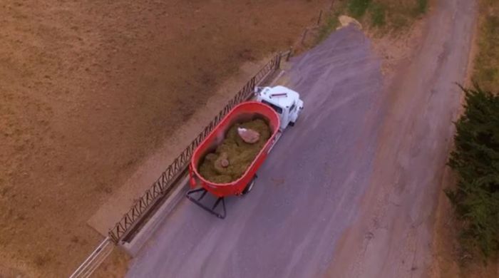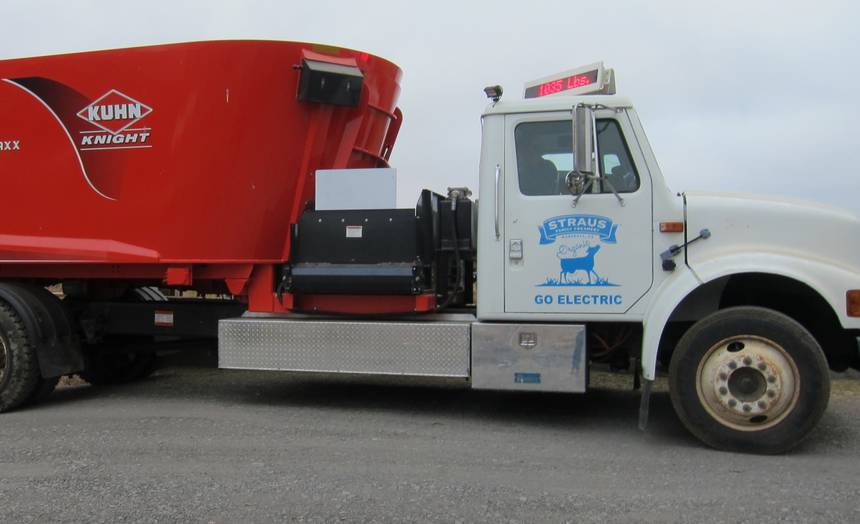 Dans le cadre d'un projet qui a duré huit ans, Albert Straus et un mécanicien local ont converti un camion International Truck de 15 tonnes en un camion entièrement électrique, qui sert maintenant de camion pour mélanger et distribuer les aliments sur l’exploitation.