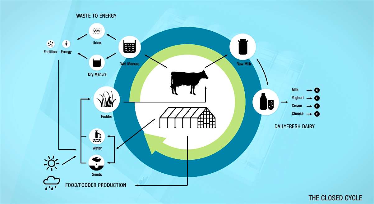 L’objectif est clair rapproché la campagne et la ville, cette première mondiale est clairement une avancée dans ce sens, en implantant une ferme laitière de 40 vaches en plein cœur du port du Rotterdam. Cet élevage de d’une surface de 1110 m2 produira à terme 1200 litres de lait par jour qui seront entièrement transformé sur place pour produire des yaourts, qui seront vendus sur place ou aux restaurants du centre-ville.