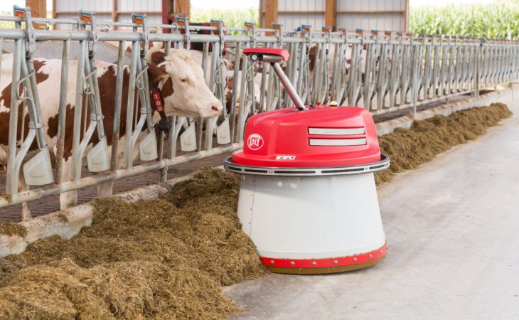 La repousse plus fréquente du fourrage stimule la consommation, pouvant augmenter jusqu’à 2,8 % l’ingestion alimentaire au sein du troupeau. En termes de traite robotisée, la repousse fréquente du fourrage incite les vaches à se rendre plus souvent au robot de traite. Cela réduit également la quantité de refus. De plus, quand il n’y a pas suffisamment de place à l’auge pour toutes les vaches, la repousse fréquente du fourrage réduit le stress et l’agressivité en garantissant la présence permanente de fourrage à la portée de chaque vache. L’automatisation de cette tâche récurrente permet de réduire considérablement le besoin en main d’œuvre et en carburant.