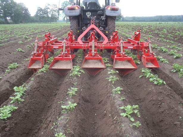 Pour les producteurs de pommes de terre qui luttent contre les mauvaises herbes de façon mécanique, sans avoir recours à l’utilisation de pesticides chimiques et qui souhaitent en même temps réaliser des buttes, Grimme a développé des buttoirs 2 et 4 rangs avec un châssis robuste baptisés "GH Eco".