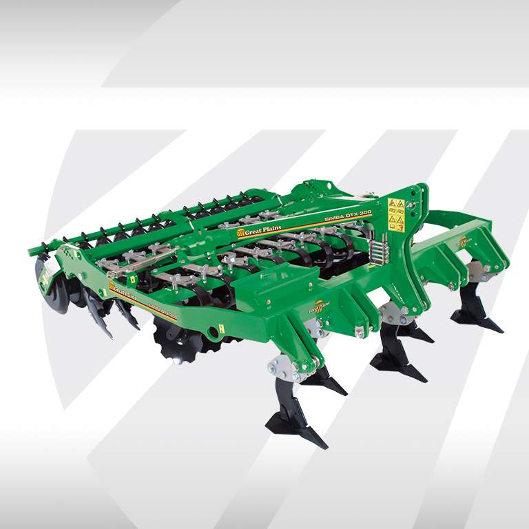 L’ameublisseur/décompacteur Simba Great Plains DTX300 se compose de cinq dents pour travailler jusqu’à 40 cm de profondeur, de disques crénelés indépendants pour affiner le travail du sol sur une profondeur de 10-15 cm et d’un rouleau pour rappuyer. L’espacement important entre les dents, les deux rangées de disques et le rouleau DD arrière fait que le DTX 300 peut traiter facilement de grandes quantités de débris.