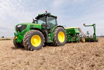 Le moteur DPS du John Deere 6150R délivre 150 ch. 20 ch supplémentaires peuvent être fournis à l'utilisation à la prise de force et au transport.