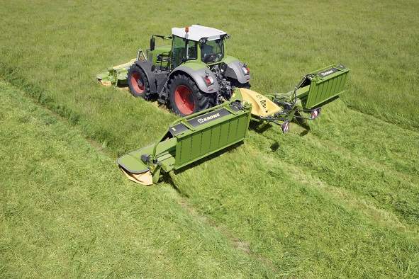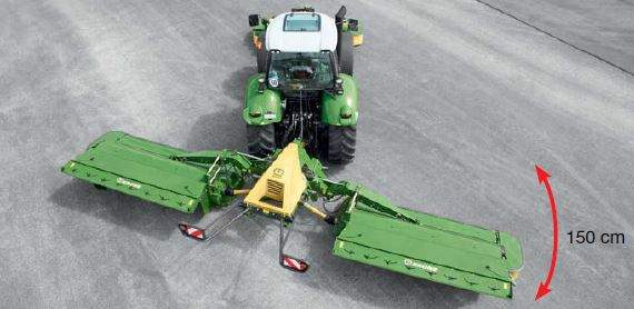L‘"EasyCut B 1000 CV Collect" de Krone a une largeur de travail de 10,10 m ce qui en fait la plus grande faucheuse portée triple avec convoyeur transversal proposée lors de sa sortie en janvier 2013 sur le marché. Mais "l’EasyCut B 1000 CV Collect" se distingue aussi par sa régulation automatique hydropneumatique de pression d’appui au sol. La régulation active « CombiFloat » Krone permet de maintenir la pression dans le système hydraulique constante. Cela signifie que la faucheuse travaille avec une pression d’appui au sol toujours homogène, même sur les sols vallonnés et cela à des vitesses d’avancement extrêmement variables. Le CombiFloat intègre en fait l’hydraulique du tracteur. Ce système garantit selon Krone un respect optimal du sol et de la couche herbacée et réduirait également les risques de dommages et d’usure. Enfin, l’EasyCut B1000 CV est doté de l’Ican (« Computer Assistance Network ») et du « Section Control » qui permet la commande automatique de largeur basée sur le système GPS. Dans les parcelles en pointe, le Section Control relève ou rabaisse la triple combinaison de faucheuses EasyCut automatiquement.