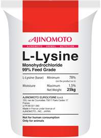La L-Lysine est l'acide aminé le plus important pour les espèces animales monogastriques, puisqu'il est le premier acide aminé limitant pour les porcs et le second pour les volailles.