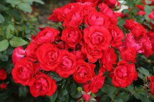 La variété "Black Forest Rose" de la firme Kordes se caractérise par un port compact et buissonnant. Les fleurs semi-doubles rouge cerise se présentent en bouquets qui se succèdent tout au long de l'été. Sa haute résistance aux maladies et sa végétation régulière font de ce rosier un digne remplaçant de Lili Marleen créé en 1959 par Kordes.