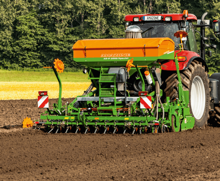 Le semoir pneumatique compact Amazone AD-P 303 Spécial en largeur de travail 3,00 et 4,00 mètres a une capacité de trémie de 750 litres. Elle peut être amenée à 1000 litres. Le semoir Amazone AD-P Spécial est adapté sur l'outil de préparation du sol en utilisant un triangle d'accouplement universel. L'Amazone AD-P Spécial peut être équipé du rouleau Packer à ergots, du rouleau PneuPacker ou du rouleau rayonneur.