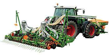 Pour une répartition optimale des masses, la grande trémie frontale Amazone d'une contenance de 1500 litres (2000 l) peut être associée à des combinaisons d'outils arrières en largeurs de travail allant de 3 à 6 mètres.