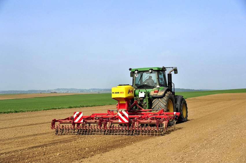 PS 500 M2 peut être combiné avec différents outils de travail du sol, comme un déchaumeur ou une herse. Grâce aux tuyaux de descente, l’homogénéité de la distribution est indépendante du vent.