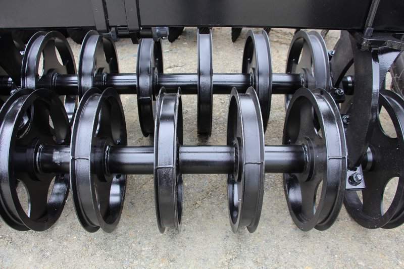 Le déchaumeur à disques DDI est semi-porté. Il dispose d’un essieu central pour le transport. On trouve ensuite le double rouleau barres ou le rouleau « Double U ». Ce dernier permet un rappui plus efficace du sol.