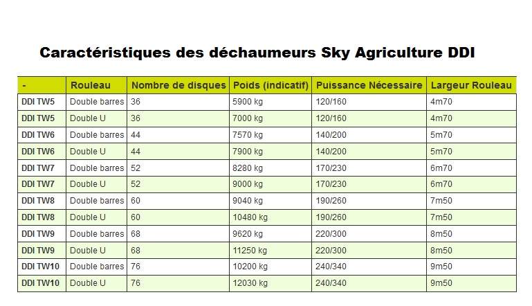Le déchaumeur « DDI » de la firme Sky Agriculture se destine aux déchaumages superficiels, au mulchage des résidus de récolte et à la destruction des couverts végétaux. Six largeurs de travail sont proposées, du DDI TW5 (36 disques) au DDI TW10 (76 disques). Sky Agriculture a signé un accord avec Grégoire-Besson pour la construction de ces déchaumeurs. Les DDI sont fabriqués dans l’usine de Bergueuneuse (Pas-de-Calais) (ex-usine Fenet propriété de Grégoire-Besson).