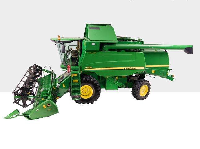 La John Deere W660 est une moissonneuse-batteuse conventionnelle. Le moteur 6 cylindres PowerTech PSX turbocompressé de John Deere délivre 371 ch.