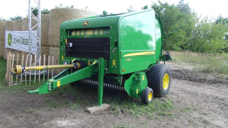 La presse à chambre fixe John Deere F450 permet la récolte de paille et de foin en botte d'un diamètre de 1.5m. Elle repond à des faibles besoins en pressage.