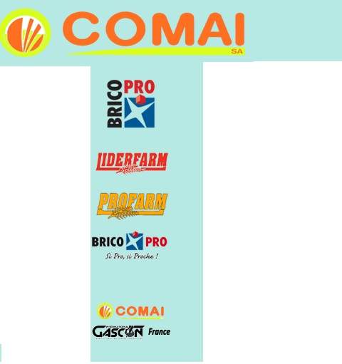 Comai distribue les marques de matériels agricoles "Farmet" (outils de travail du sol), "Cosmo", "Liderfarm" (matériels d'élevage), "Gascon International" (outils de travail du sol), "Florida" (pulvérsiateurs)