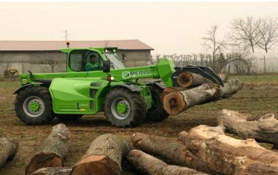 Le Merlo P 55.9 CS est un chargeur télescopique disposant d'une capacité de cavage de 5.5t et d’une hauteur de levée de 8.6 m. La terminologie "CS" correspond à la cabine à suspension hydropneumatique (de série).