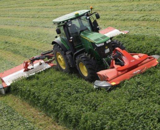 L’unité arrière Kuhn FC 10030 est composée de 2 groupes de fauche de 3,50m. Elle s'associe à la faucheuse-conditionneuse frontale Kuhn FC 3525 F de 3,50 m de largeur de coupe.