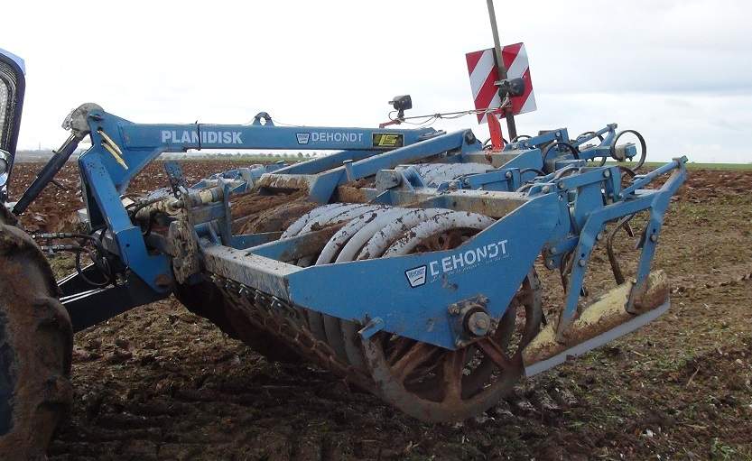 Le Planidisk Dehondt se recentre automatiquement lors de la levée. L'utilisateur peut le verrouiller au transport. Le Plainisk existe en version fixe (de 1,65 à 4m de largeur de travail) ou repliable (de 3 à 4 m au travail et 2,49 m sur la route).