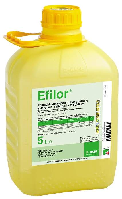 Disponible pour les applications 2014, Efilor contient deux matières actives complémentaires, boscalid et metconazole, qui lui permettent, d’apporter des gains de rendement en luttant contre les principales maladies du colza: sclérotinia, alternaria et oïdium.