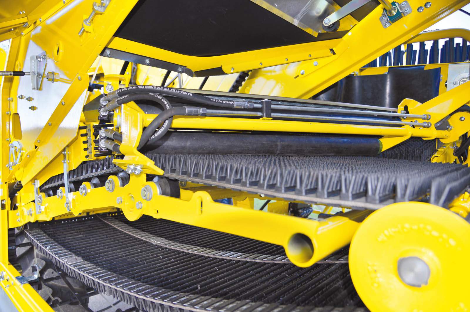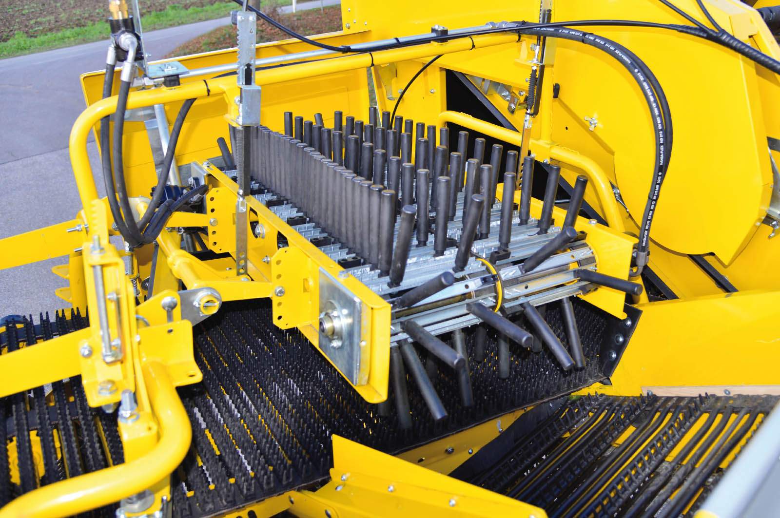 Cette machine dispode d’un bâti arracheur d’un rang, avec au choix une trémie de 4.3t ou de 6.1t. Cette arracheuse à pommes de terre a été spécialement conçue pour les producteurs de pommes de terre de consommation, par un nettoyage efficace et doux à la fois, et une parfaite élimination des fanes. Grâce à un système hydraulique indépendant à contrôle de charge (Load-Sensing), les tapis à tétines, entre autres, ont un entraînement hydraulique à vitesse réglable.