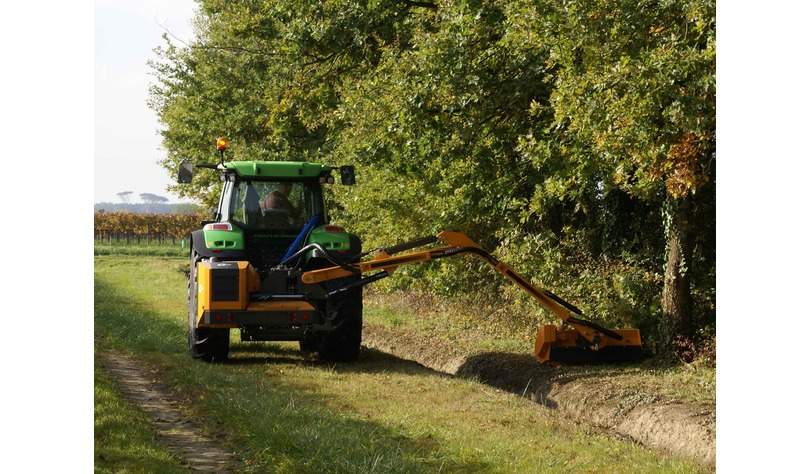 Le système de balayage 120° apporte une réelle efficacité de travail dans les endroits les plus exigus sans manoeuvres supplémentaires. La position centrale du pivot offre une stabilité entre tracteur et machine très intéressante.
