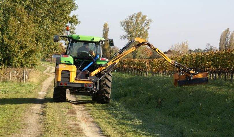 | PLUTON - 60 CV - 5 à 5.5m, bras avancé Le nouveaux bras avancé Lagarde qui équipe les débroussailleuses Pluton avance le groupe de broyage de 800 mm. La nette visibilité et la facilité de prise en main apportent un confort d'utilisation maximal. La débroussailleuse Pluton se décline en 2 longueurs de bras avancé : 5m et 5.5m de portée horizontale. Elles reçoivent un entraînement hydraulique du rotor développement 60 cv, des commandes de type monolevier électrique ou monolevier basse pression. Comme l'ensemble des débroussailleuses de la marque, l'Orion dispose du standard de qualité Lagarde. De plus, la conception de ce bras procure un grand intérêt lors de travail en fossés ou sur haies, l'utilisateur peut anticiper facilement les obstacles et les contourner sans diminuer le rendement horaire de chantier. Une meilleure finition de vos chantiers sans augmentation de temps. La suspension oléopneumatique apporte une souplesse dans la manipulation et assure un suivi lors de hauteurs de terrain différentes. Le système de balayage 120° apporte une réelle efficacité de travail dans les endroits les plus exigus sans manoeuvre supplémentaire. La position centrale du pivot offre une stabilité entre tracteur et machine très intéressante. Une sécurité placée sur le système de balayage permet un effacement du groupe de broyage lors d'effort trop important et diminue ainsi l'ensemble des contraintes sur les éléments mécaniques. Un système "Float" mis en œuvre depuis le poste de conduite assure un suivi de terrain. Le nouveau groupe de broyage 1,20m qui équipe les débroussailleuses Orion dispose du double sens de rotation inversable du poste de conduite. Il permet donc de travailler à "rebrousse-poil" pour le fauchage d'herbe mais aussi "en tombant sur la végétation" pour le débroussaillage. La transmission indirecte (poulie/courroie) réduit l'encombrement du groupe de broyage, facilitant ainsi l'accessibilité en fond de fossés, diminue les coups de bélier sur le moteur hydraulique augmentant sa durée de vie et protège le moteur de tous corps étrangers pouvant l'endommager. Le rotor herbe monté de série sur ces débroussailleuses reçoit un nombre de lames Y important (60 lames). Il assure un travail de fauchage, de débroussaillage de très haute qualité. Un rotor renforcé, spécial débroussaillage peut équiper ces débroussailleuses. Il reçoit, au choix, des lames Y ou des marteaux et offre une possibilité de débroussaillage de branches jusqu'à 6 cm de diamètre. Le rouleau palpeur de grand diamètre (140mm), facilite le roulement du groupe de broyage et diminue les contraintes sur l'ensemble des éléments mécaniques. Les embouts démontables du rouleau palpeur renferment des roulements de grande dimension et les protègent ainsi d'enroulement intempestif. > Le pivot placé en partie centrale et un centre de gravité bas augmentent la stabilité de l'attelage tracteur machine et diminuent l'effort appliqué sur les bras de relevage. > Une conception de bras et d'articulation de type TP; toutes les articulations sont montées sur bagues alvéolées, les points d'encrage des vérins sont de dimension importante. > Un aéroréfrigérant assure le maintien de l'huile à une température raisonnable. > Au transport, aucun effort n'est appliqué au vérin, la machine est entièrement tenue mécaniquement; plus de sécurité > Deux types d'attelage sont disponibles sur ces débroussailleuses. Le premier système est un attelage en chape comportant deux haubans de stabilisation, le second est un attelage par châssis articulé ; il augmente l'assise de la débroussailleuse sur le tracteur et rend la combinaison plus stable. > Un pare-chocs renforcé intègre la signalisation routière. |