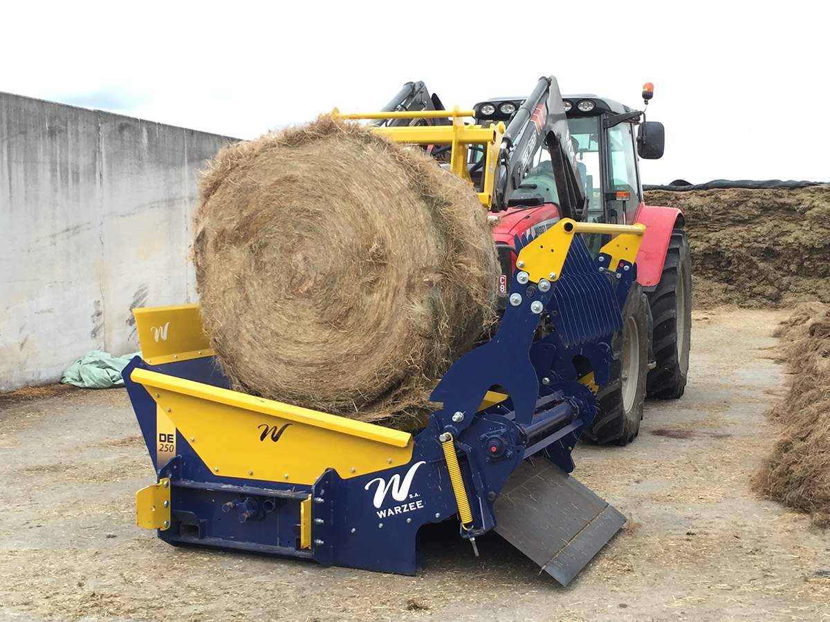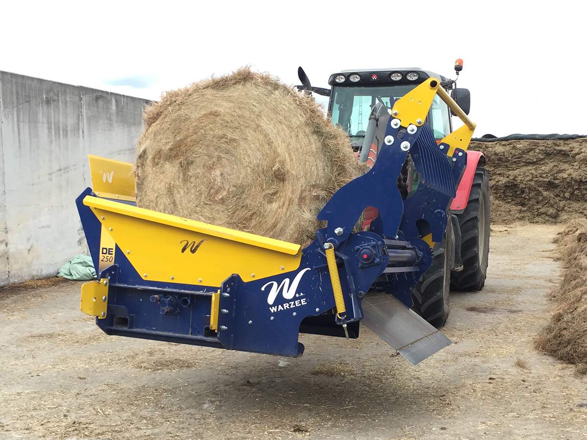 La dérouleuse Warzée DE250 permet de distribuer n'import quelle balle ronde de foin, paille ou enrubanné.
