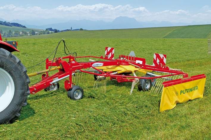 Il s'agit d'un andaineur mono-rotor d'une largeur de travail de 4.60 m en version traînée. Cette version permet d'andainer avec un tracteur à partir de 30 ch seulement.